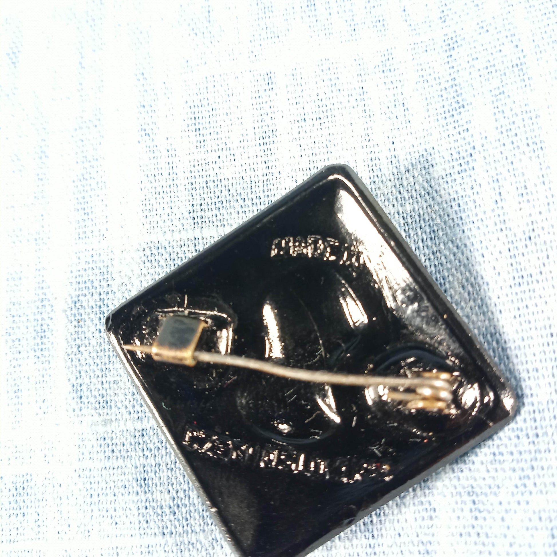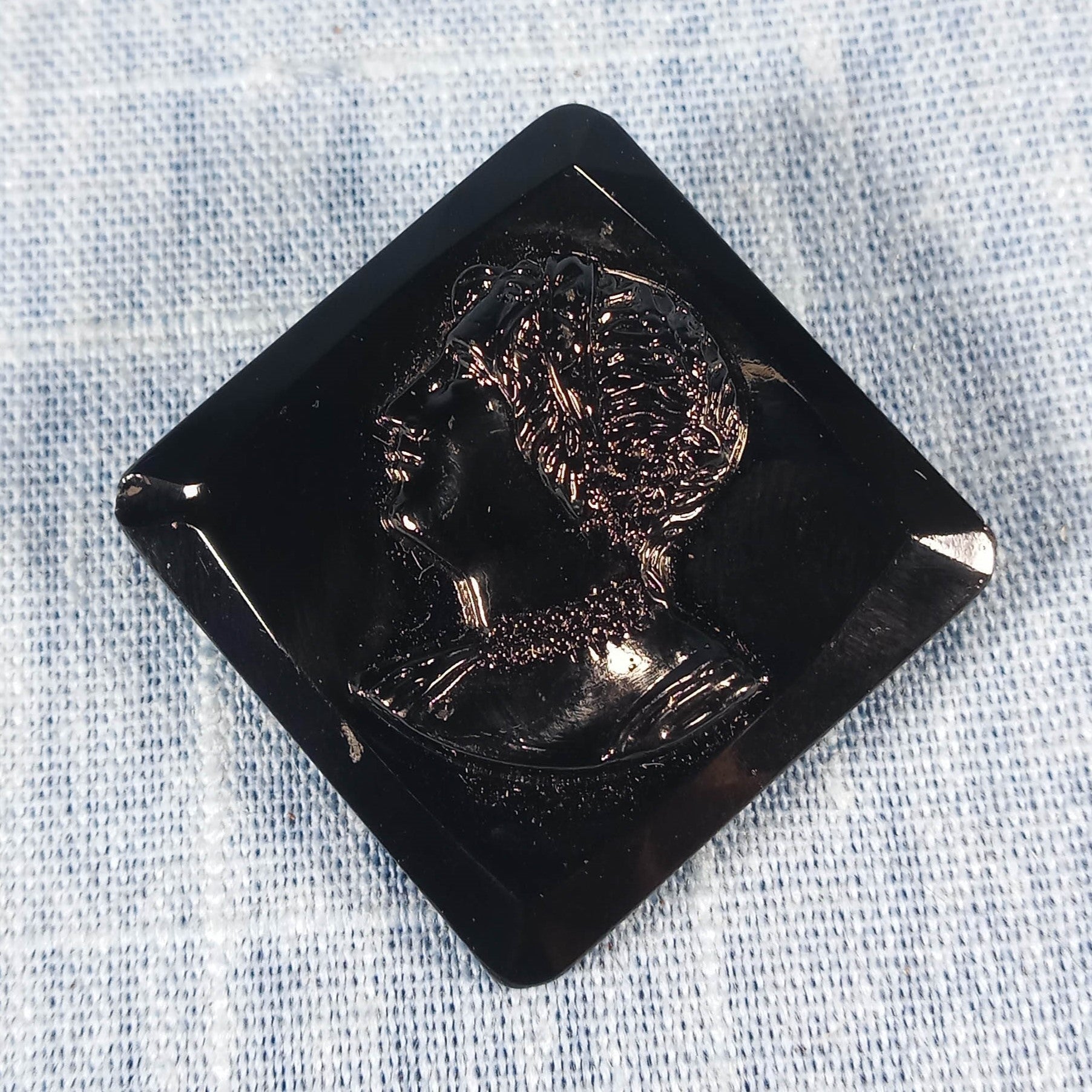 1940s Vintage Cameo Pin in All Black from Czechoslovakia