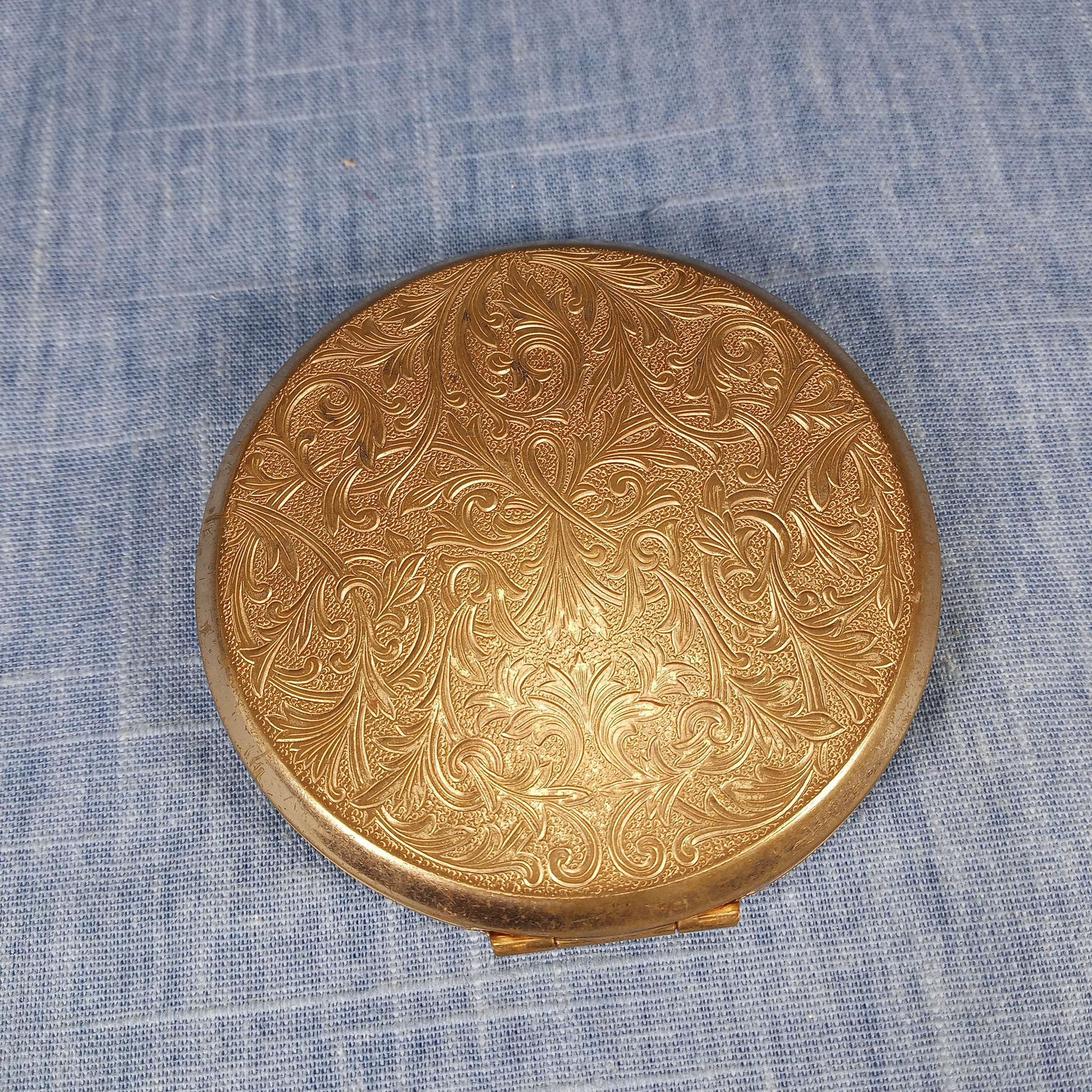 Step back in time with this charming 1940s vintage compact—a practical beauty essential that doubles as a nostalgic collectible. Featuring divided compartments to keep your makeup organized and accessible, this mirror-free design lets you focus on the compact's authentic vintage appeal. Perfect for storing loose powders, blush, or small cosmetics, it's an ideal piece for vintage enthusiasts, collectors, or anyone who loves adding retro character to their vanity. A delightful reminder of classic glamour from the golden age of Hollywood. Created by Stratton in England