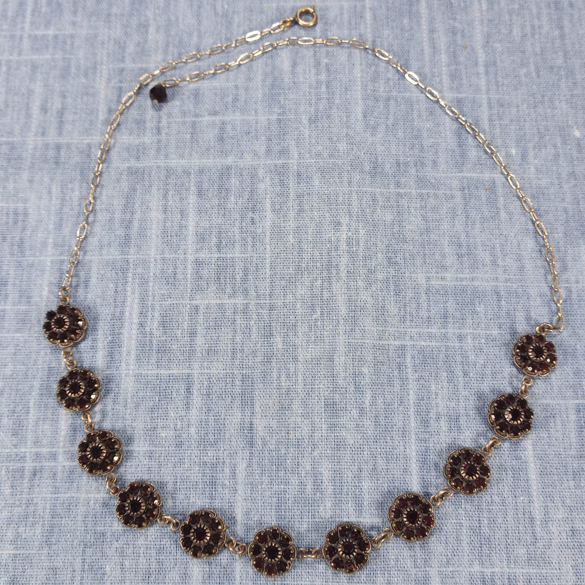 1940s Vintage Necklace with a Single Strand of Red Rhinestone Starbursts