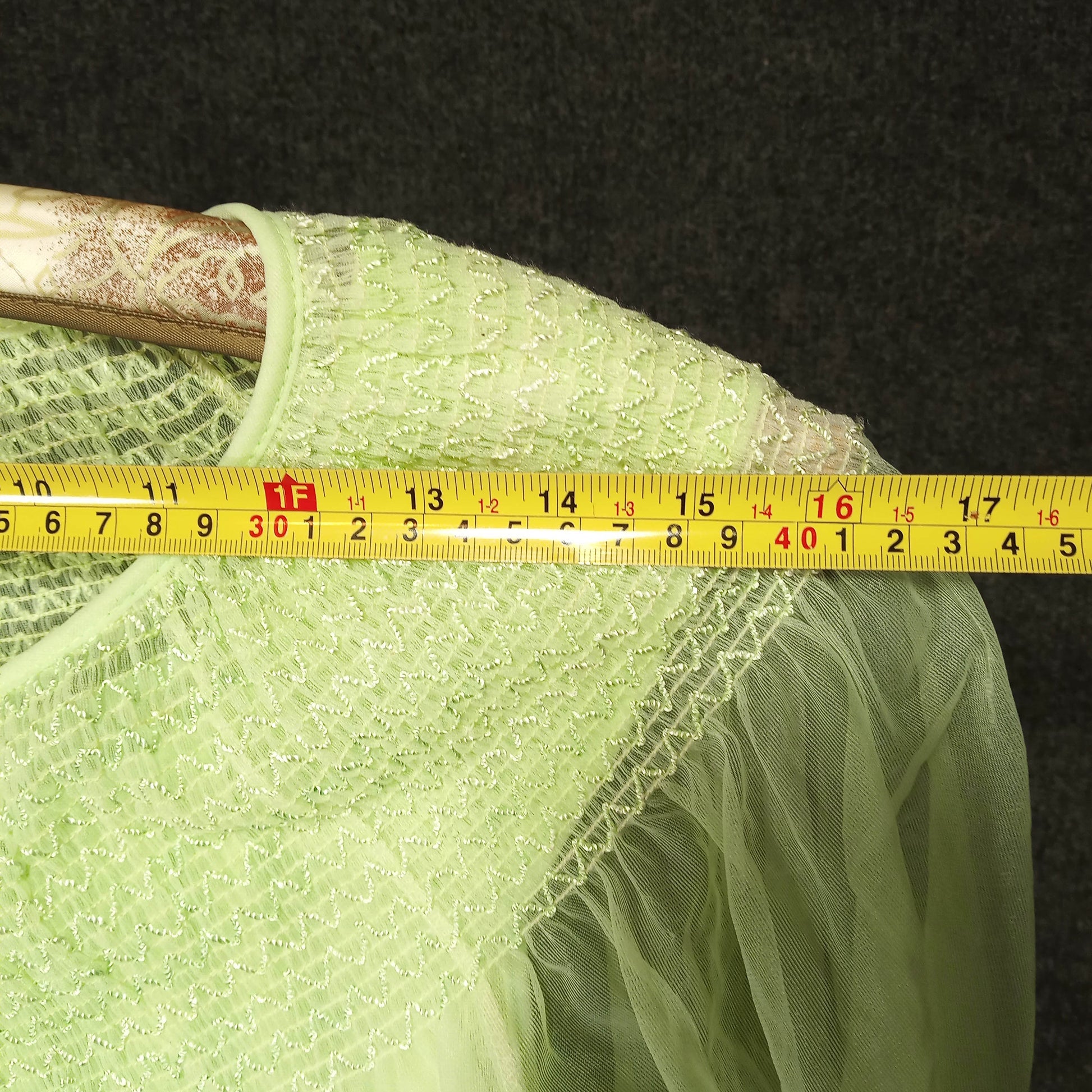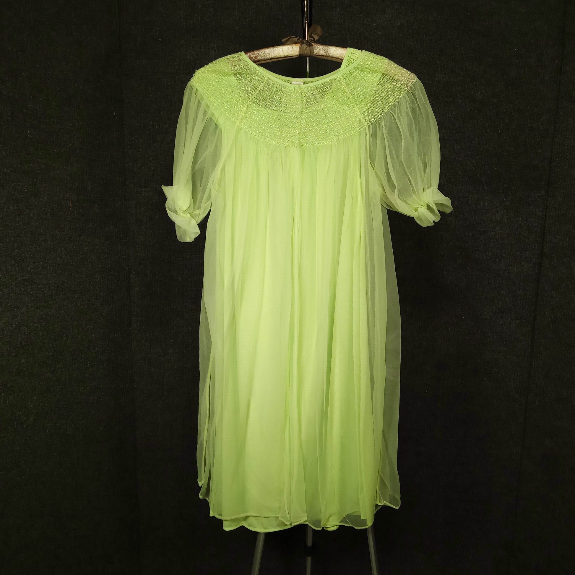 Vintage Peignoir set in lime green. Sheer robe with a wide collar nightie.