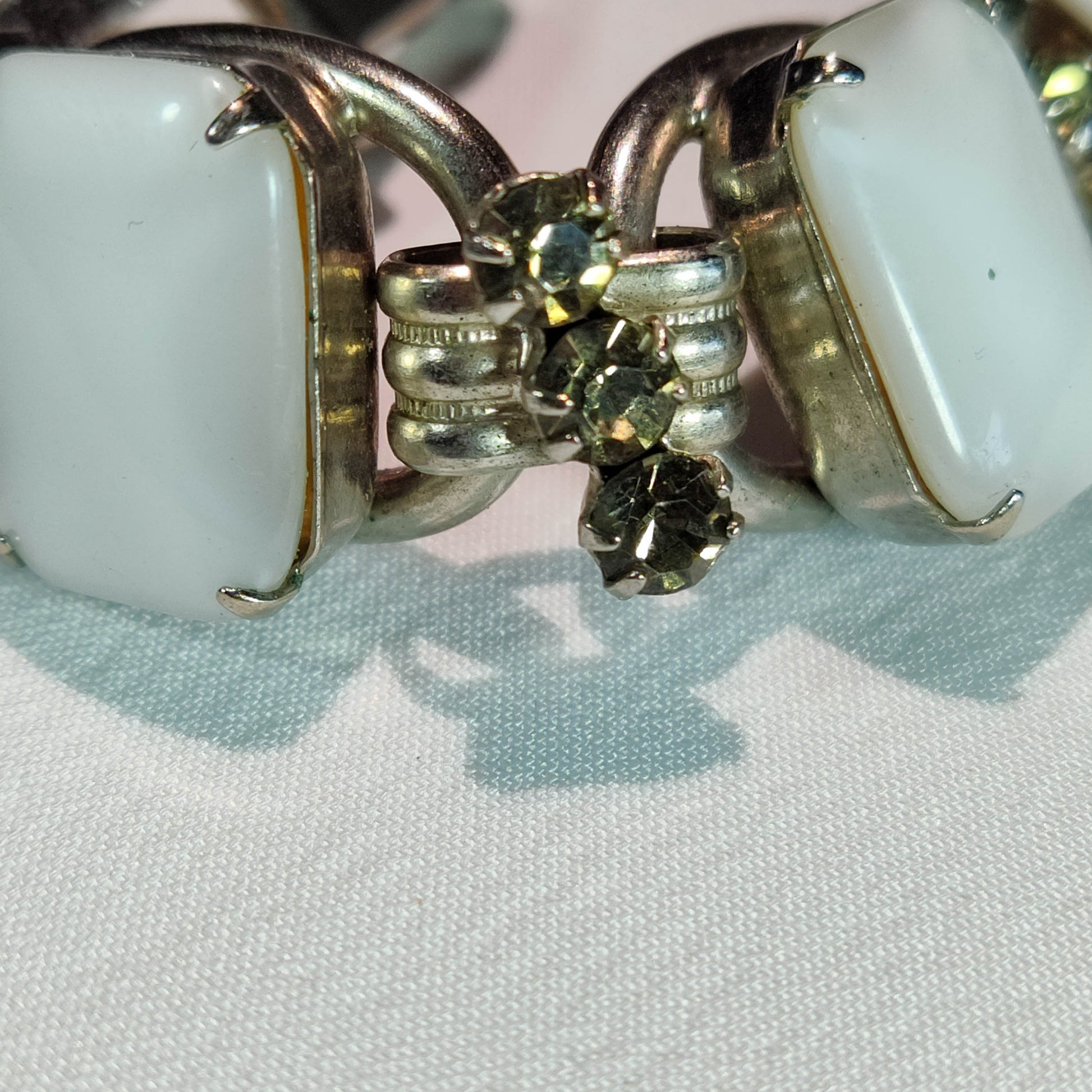 1950's Vintage White Moonstone and Gray Rhinestone Chunky Bracelet