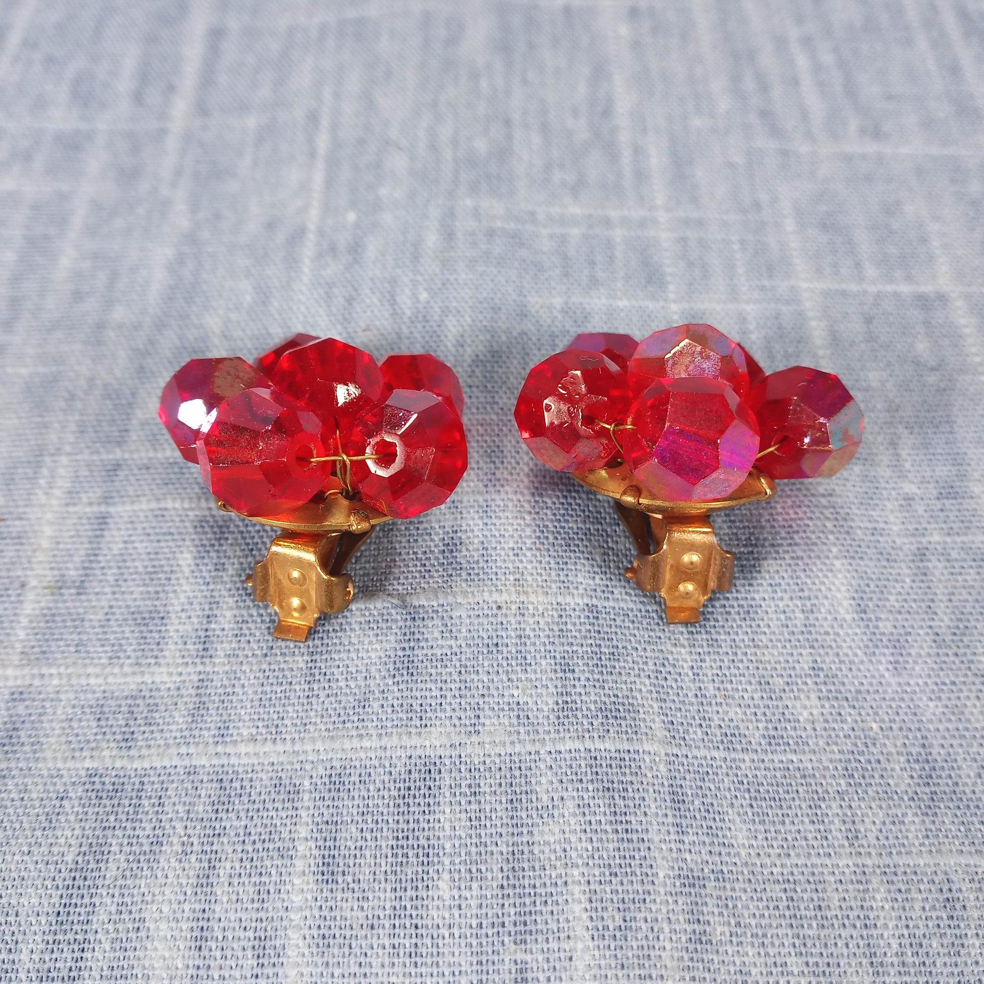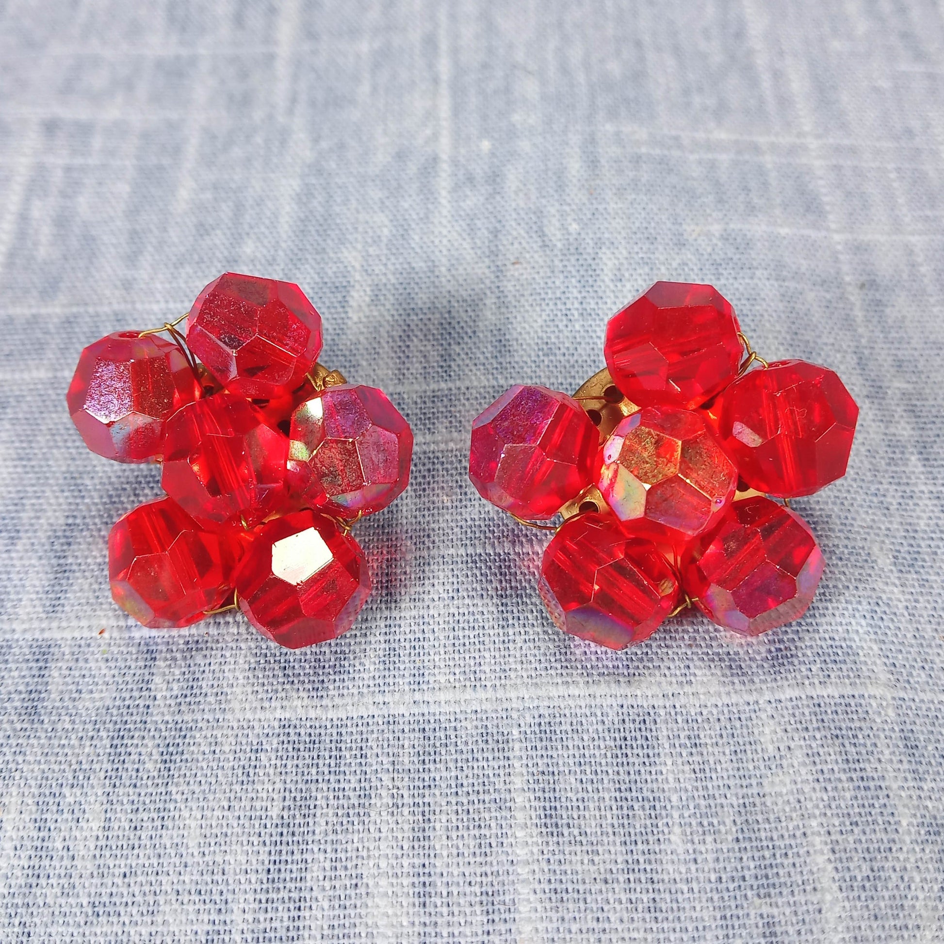 1950s Vintage Clip Earrings with Cherry Red Beads in a Flower Shape