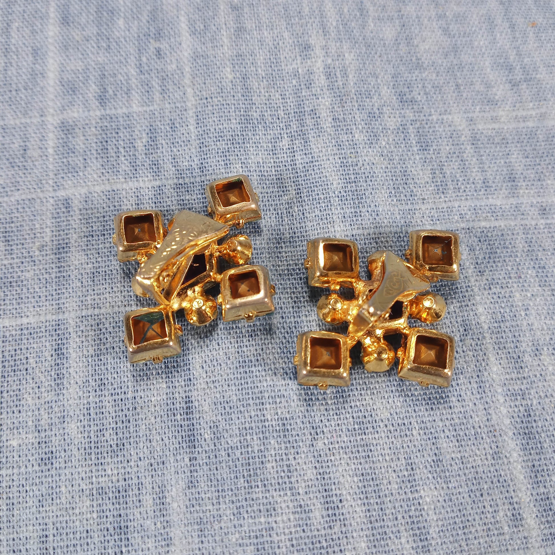 Add a sparkling retro twist to your look with these playful 1950s vintage clip earrings! Featuring vibrant green and purple rhinestones arranged in a dazzling star shape, they bring a burst of colorful charm and nostalgic flair to any outfit. Perfect for adding a little sparkle and personality, these earrings are a fun nod to classic glamour with a whimsical, eye-catching pop.
