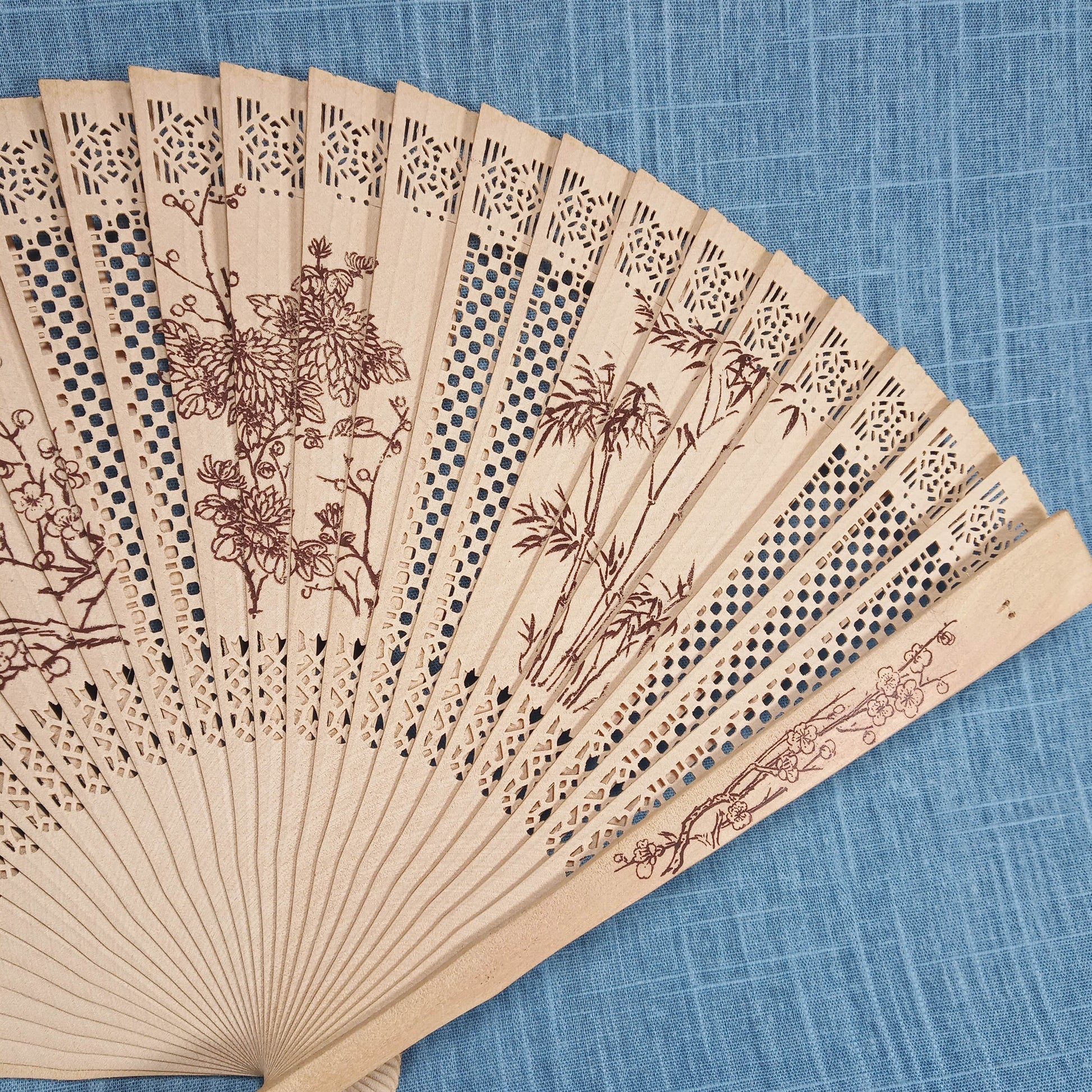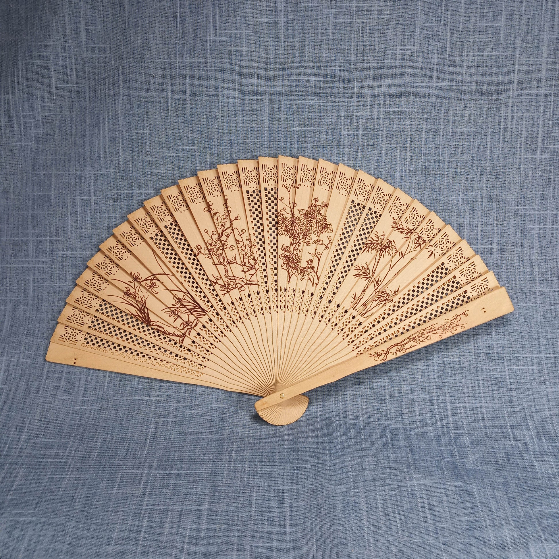 1950s Vintage Japanese Wood Fan With Imprinted Flowers