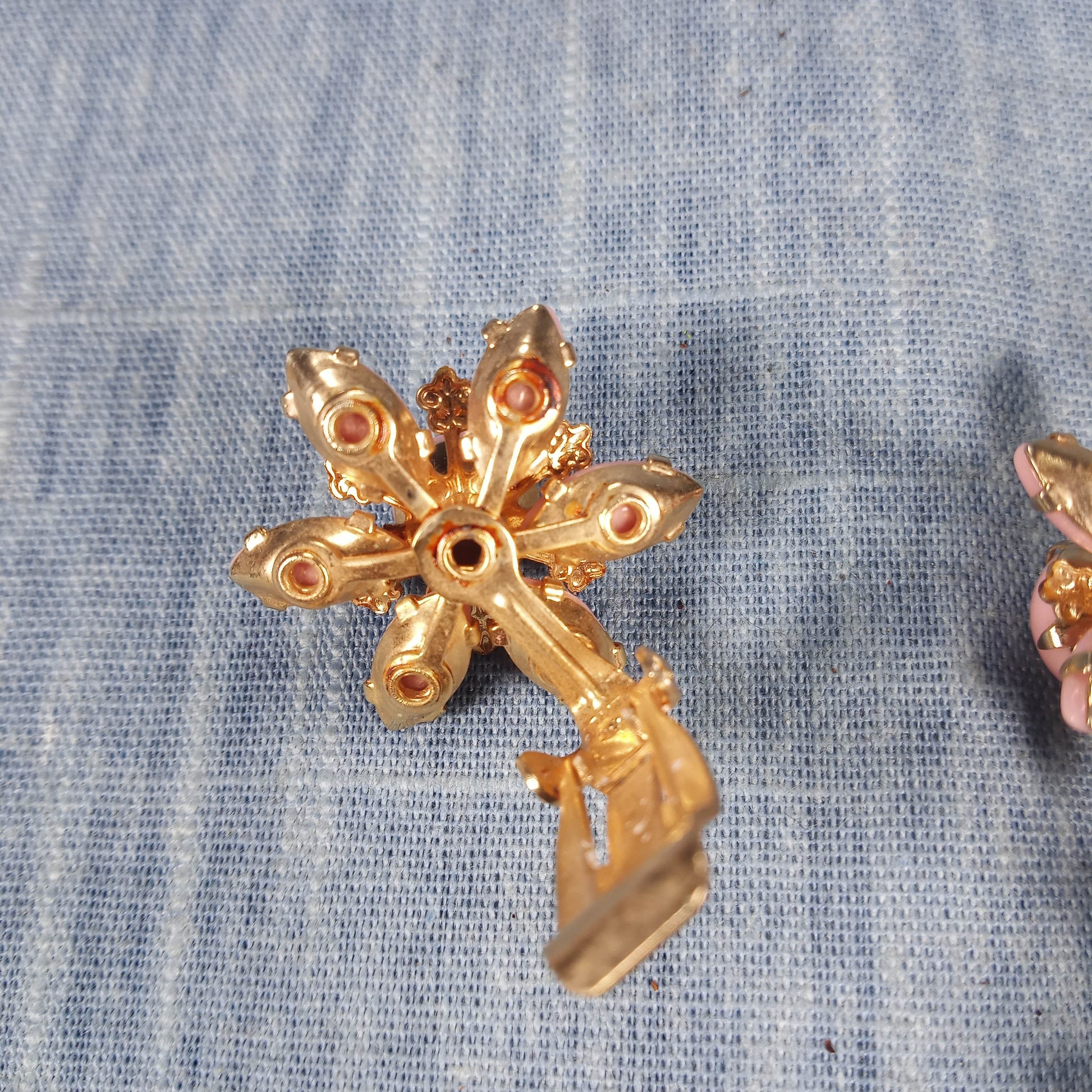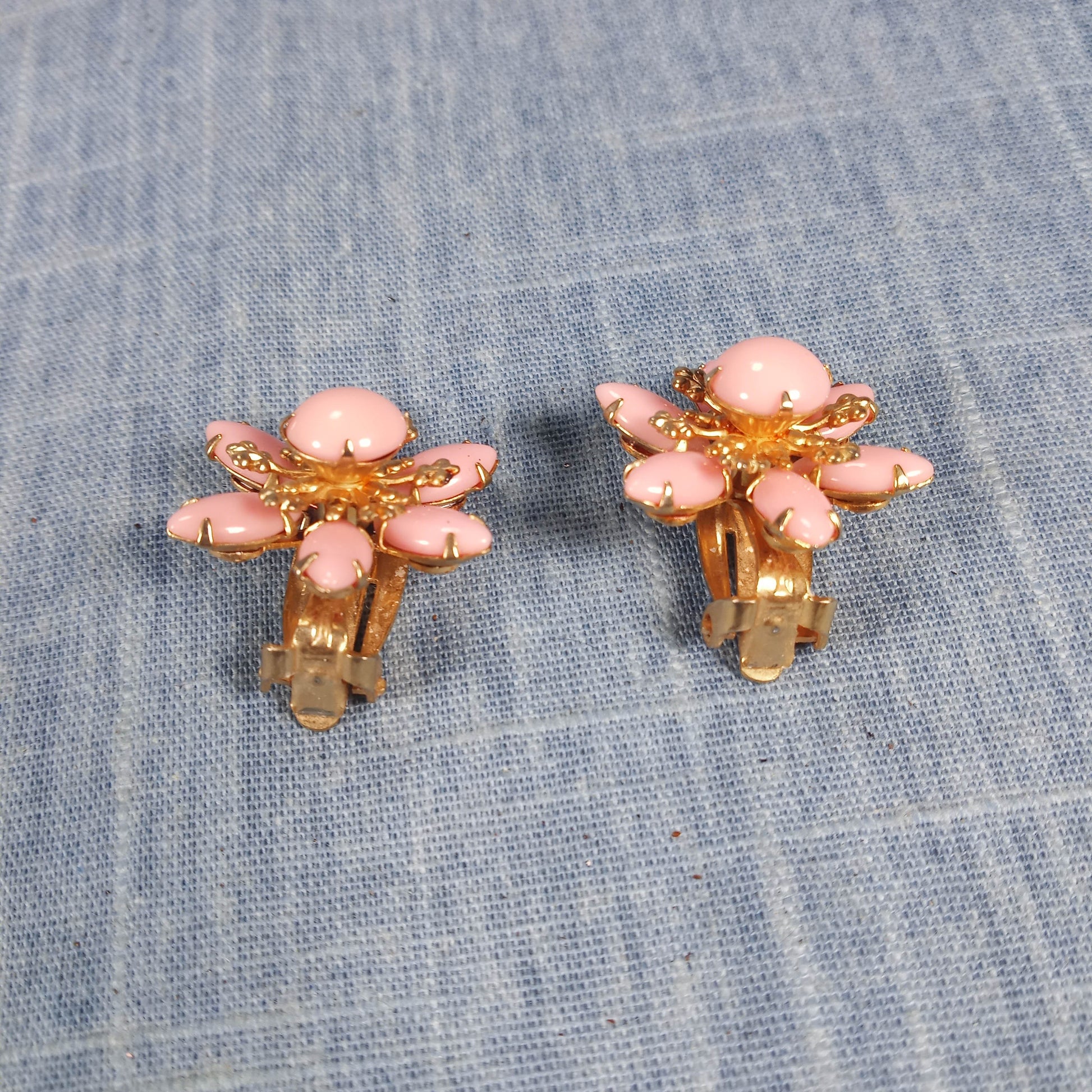 1950s Vintage Jewelry Set: Matching Pair of Earrings and Brooch w Pink Beads
