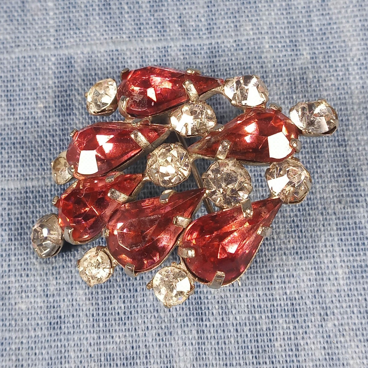 1950s Vintage Pin with Red and Clear Tear Drop Rhinestones from Czechoslovakia