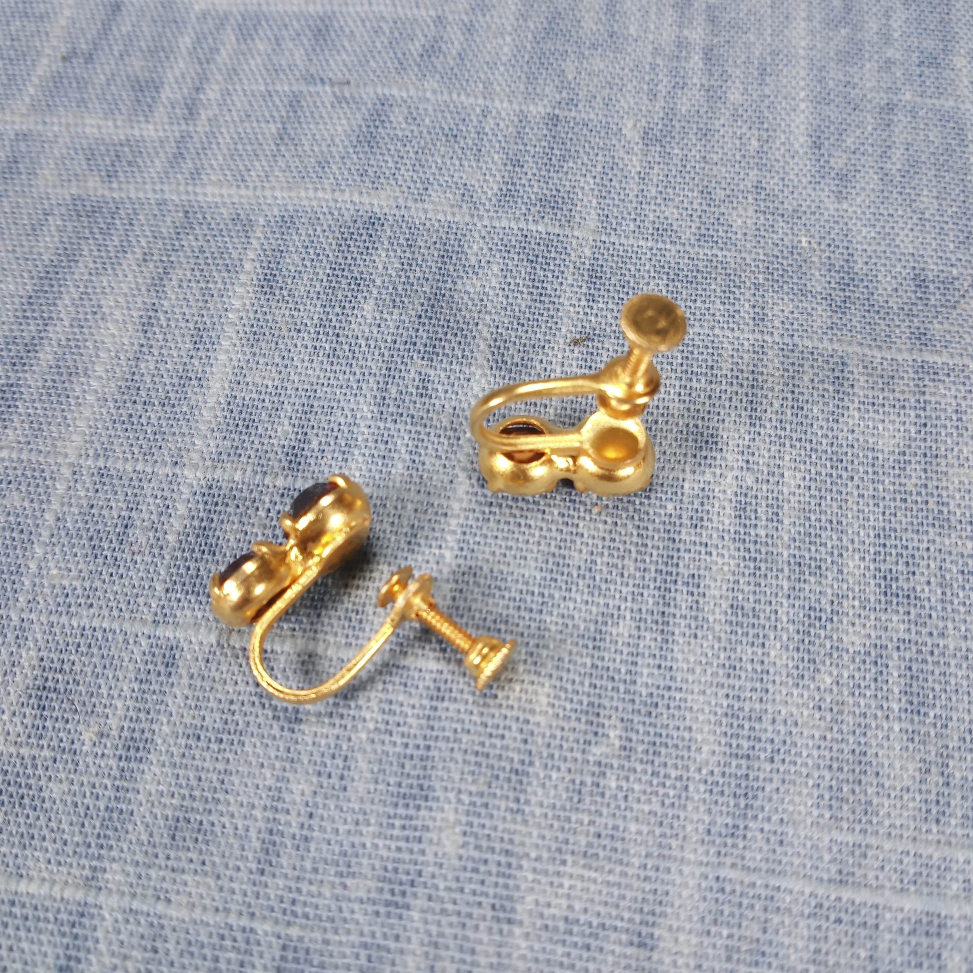 Add a pop of retro charm with these delightful 1950s vintage screw back earrings, featuring two sparkling red rhinestones each. Their classic screw back design makes them easy to wear and secure, perfect for dancing the night away or adding a splash of color to any outfit. Let these playful, timeless treasures bring a touch of vintage glam to your jewelry collection.