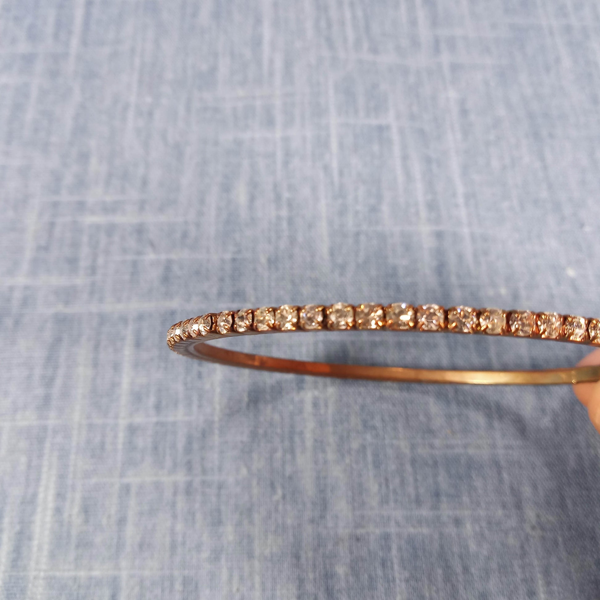 1960s Vintage Bangle Bracelet with a Single Row of Clear Rhinestones