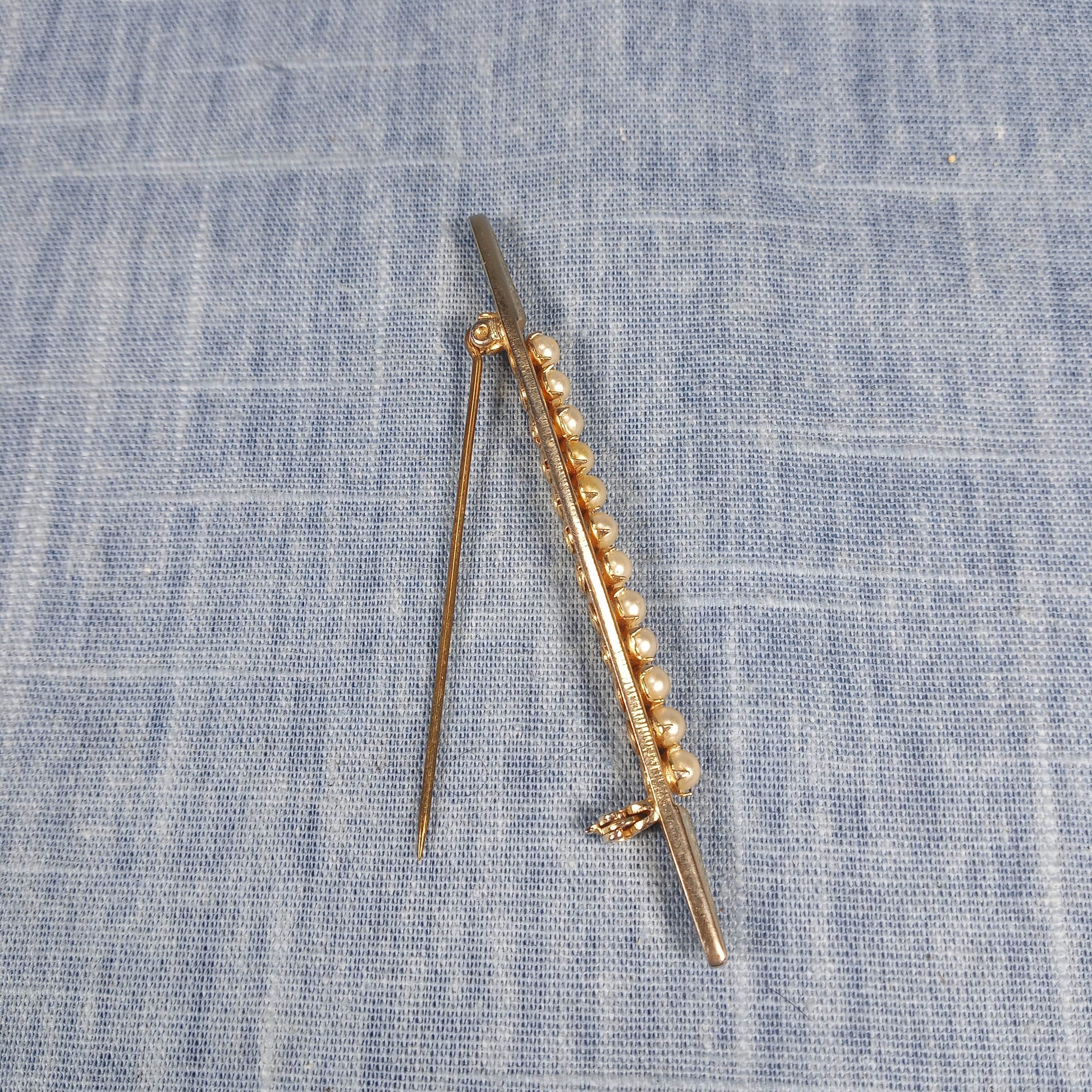 1960s Vintage Bar Pin with Gold Tone and White Beads