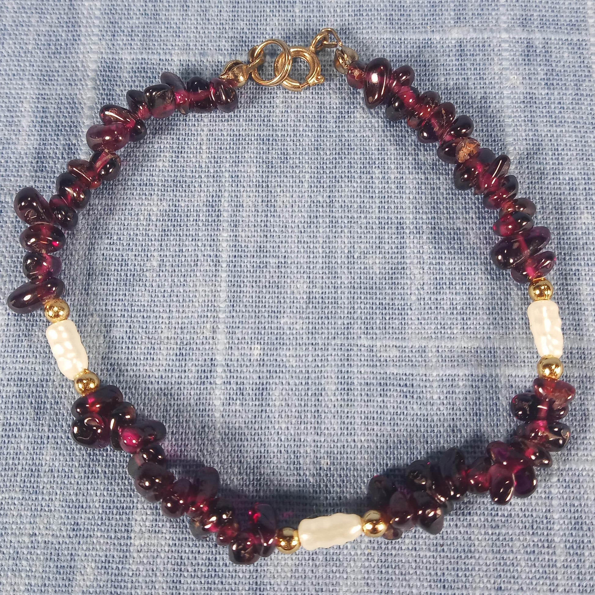 1960s Vintage Bracelet of Garnets and Fresh Pearls