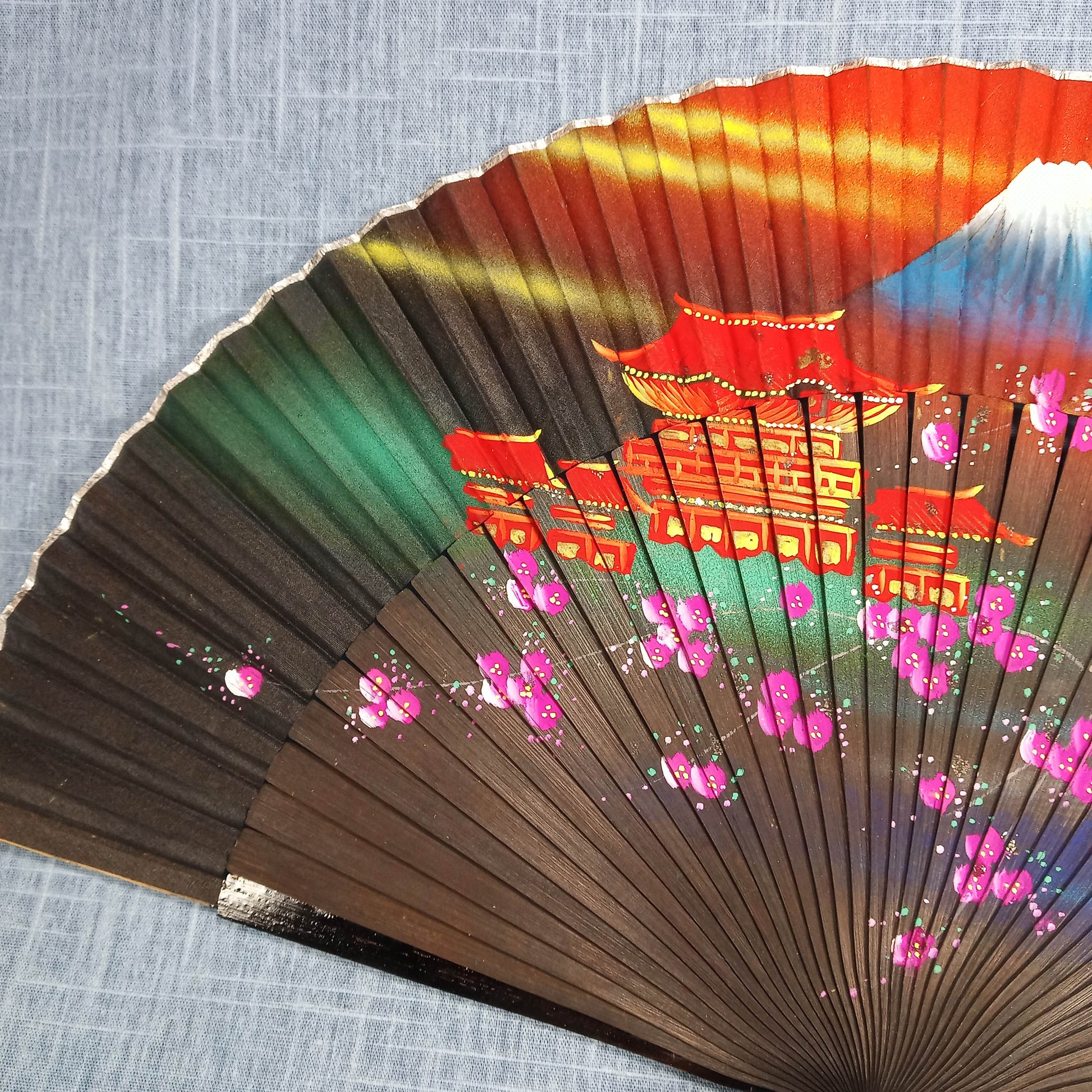 1960s Vintage Fan: Hand Painted with a Japanese Scene