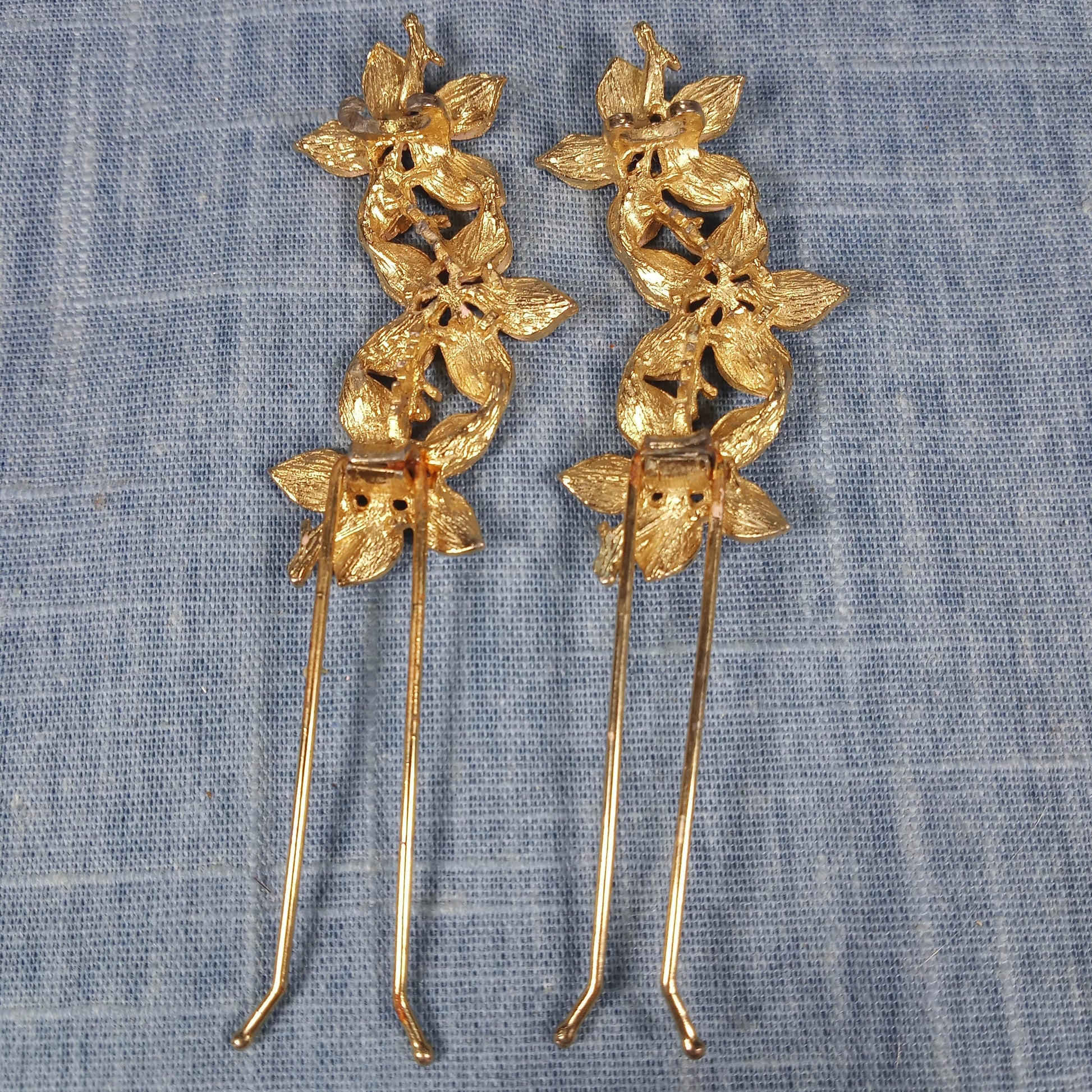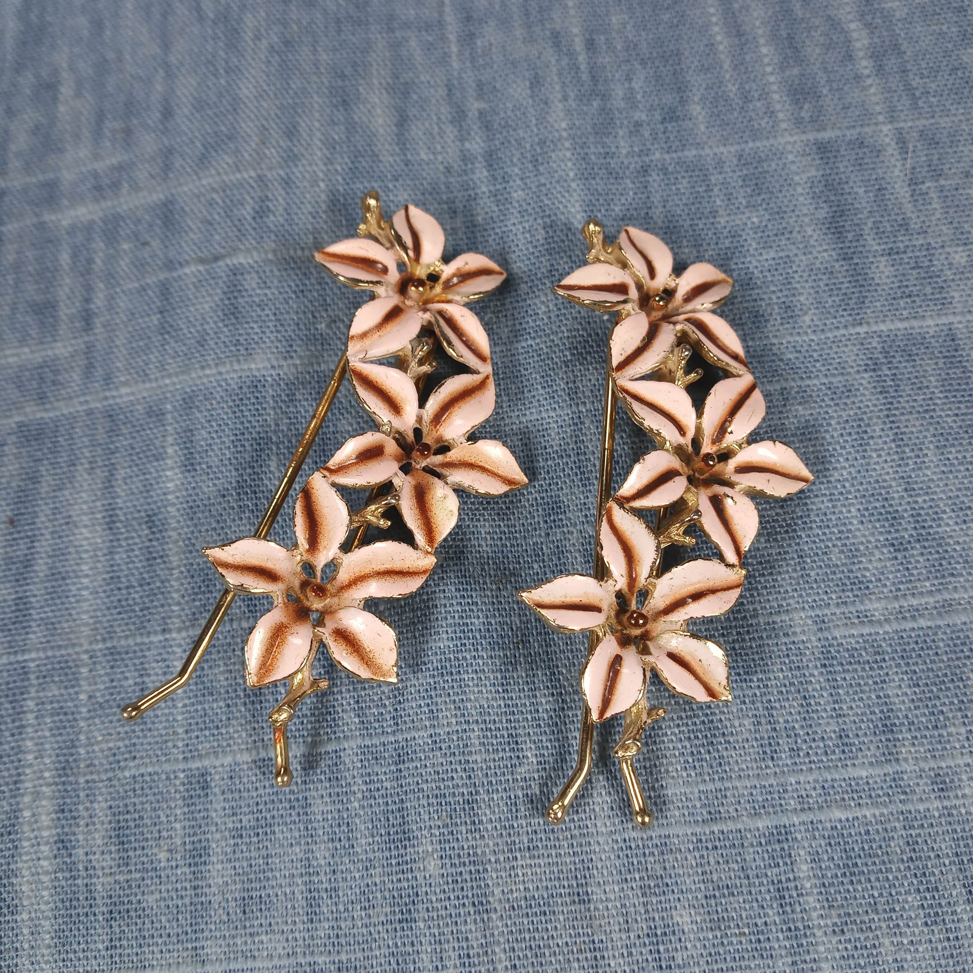 Add a pop of retro charm with this playful set of 1960s vintage flower hairpins! Featuring a trio of white and red enamel flowers, these matching pins bring a fun, colorful touch to any hairstyle. Perfect for brightening your look with a dash of vintage whimsy.
