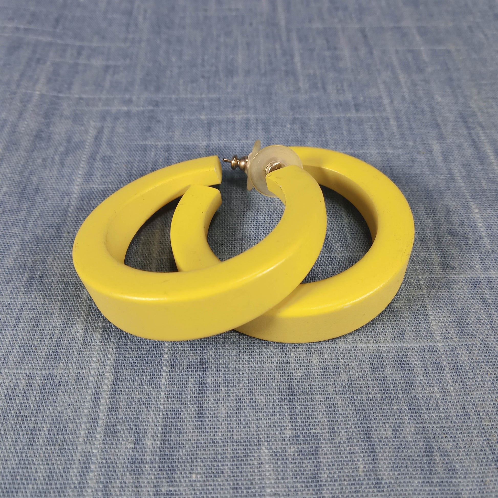 1960s Vintage Hoop Pierced Earrings in Banana Yellow