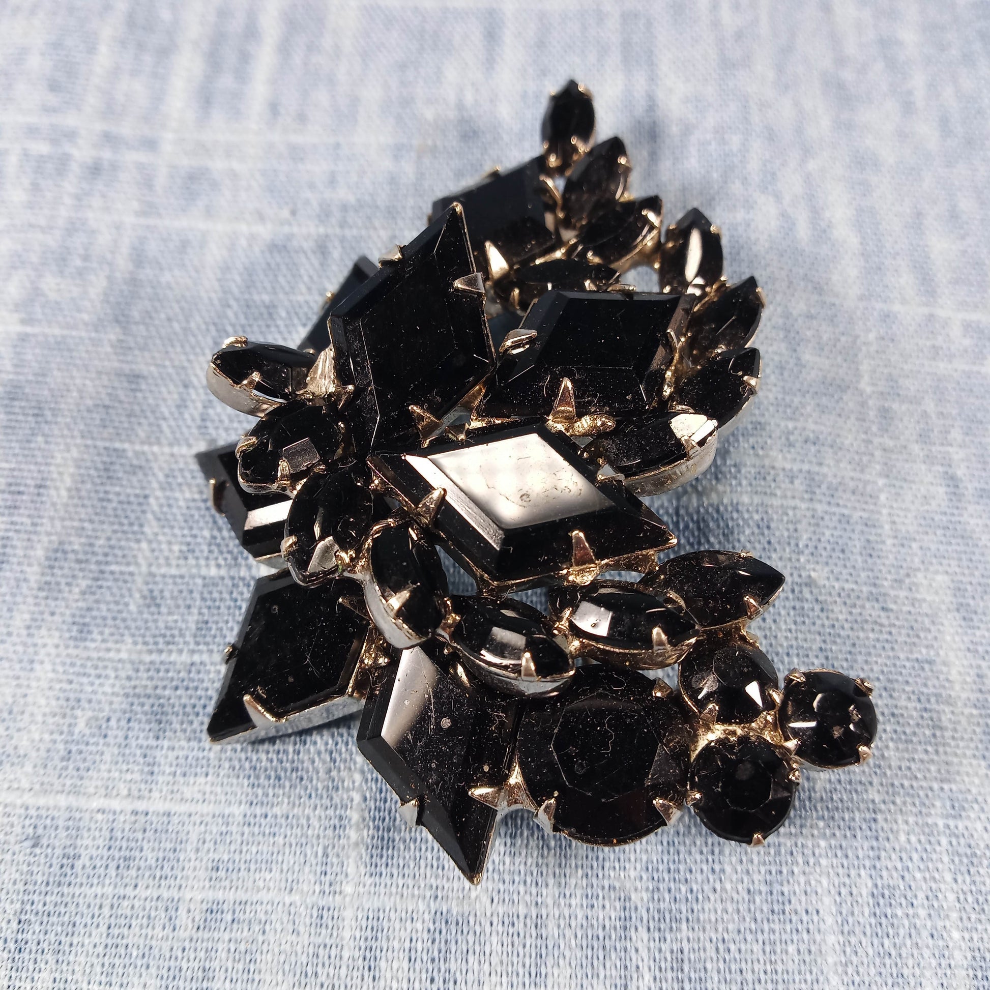 1960s Vintage Jewelry Set: Matching Brooch and Clip Earrings with Black Rhinestones