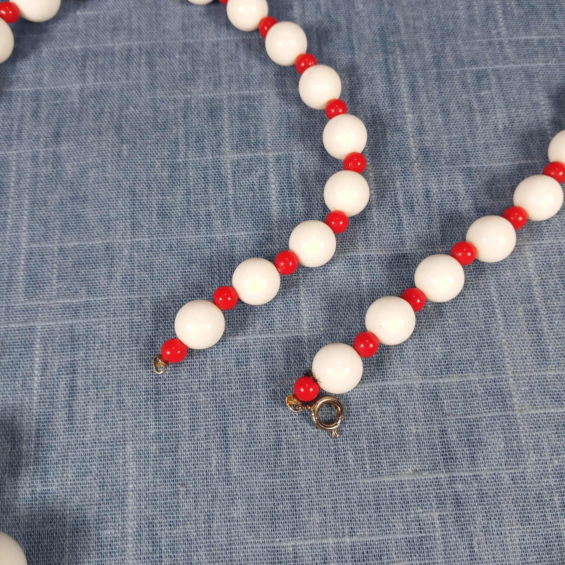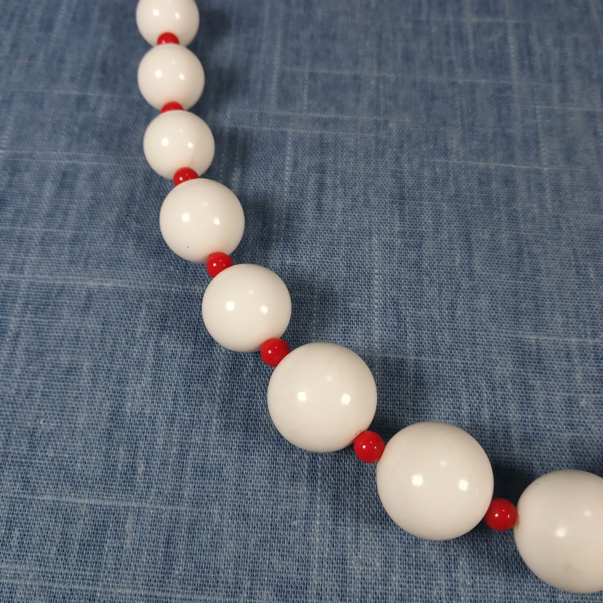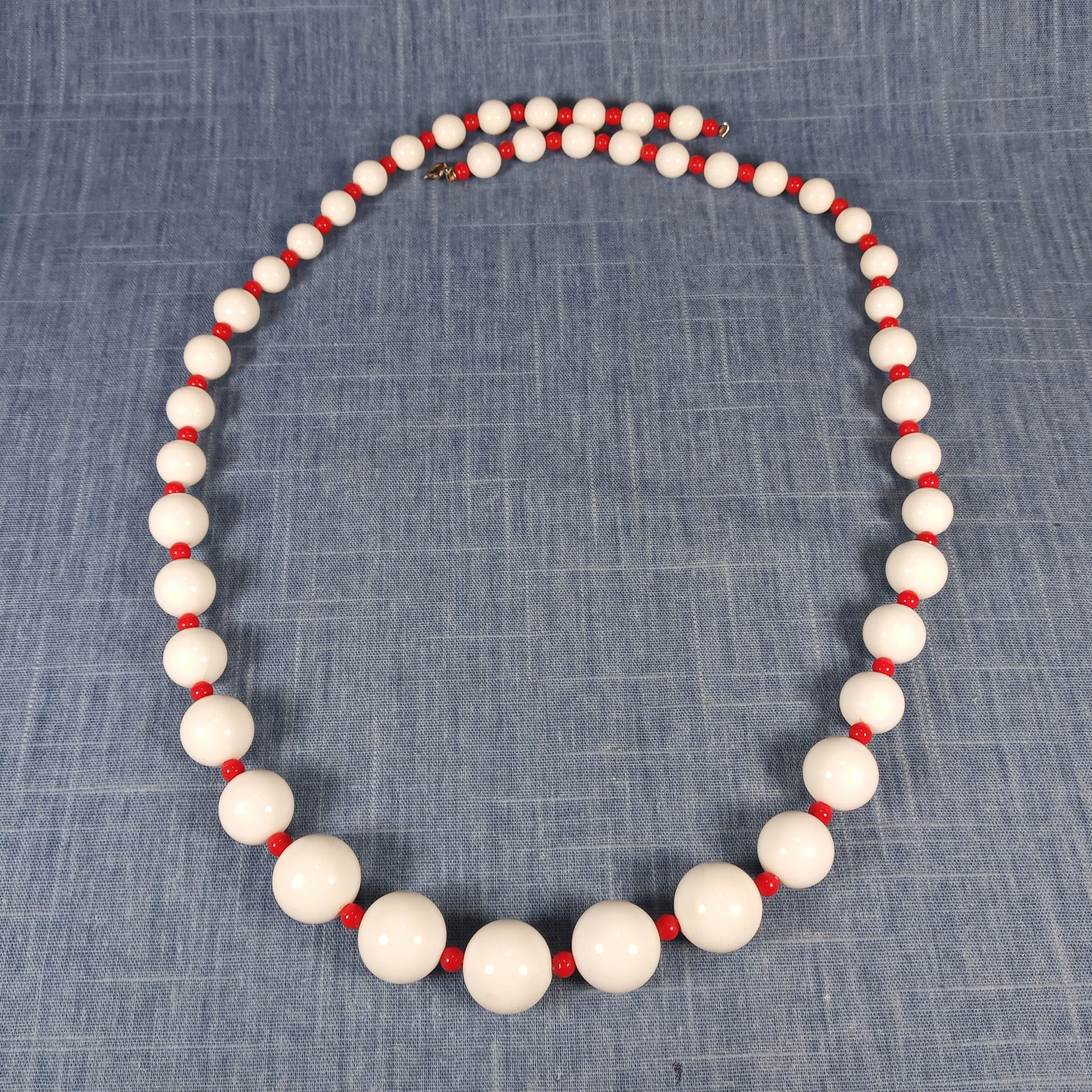 1960s Vintage Necklace with Alternating Large White and Small Red Beads