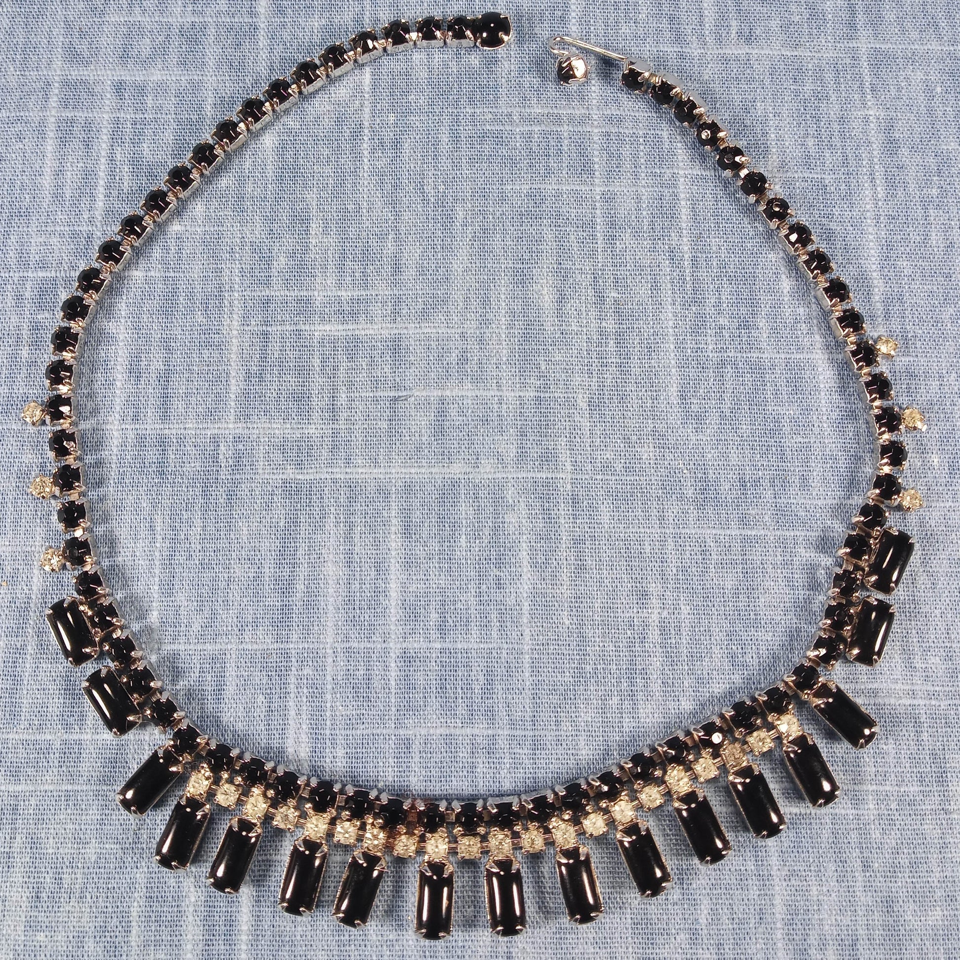 1960s Vintage Necklace with Onyx and Clear Rhinestones