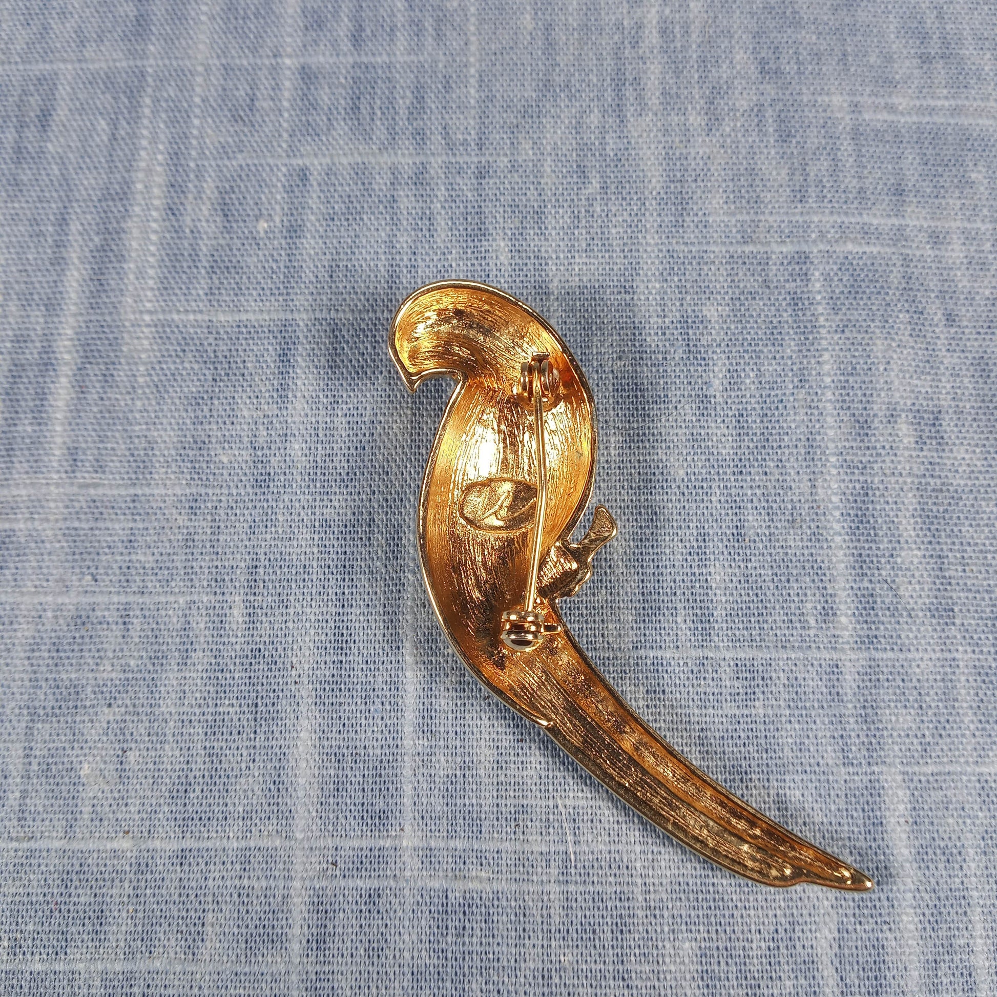 1960s Vintage Parrot Pin with Gold Tone and Green Tail