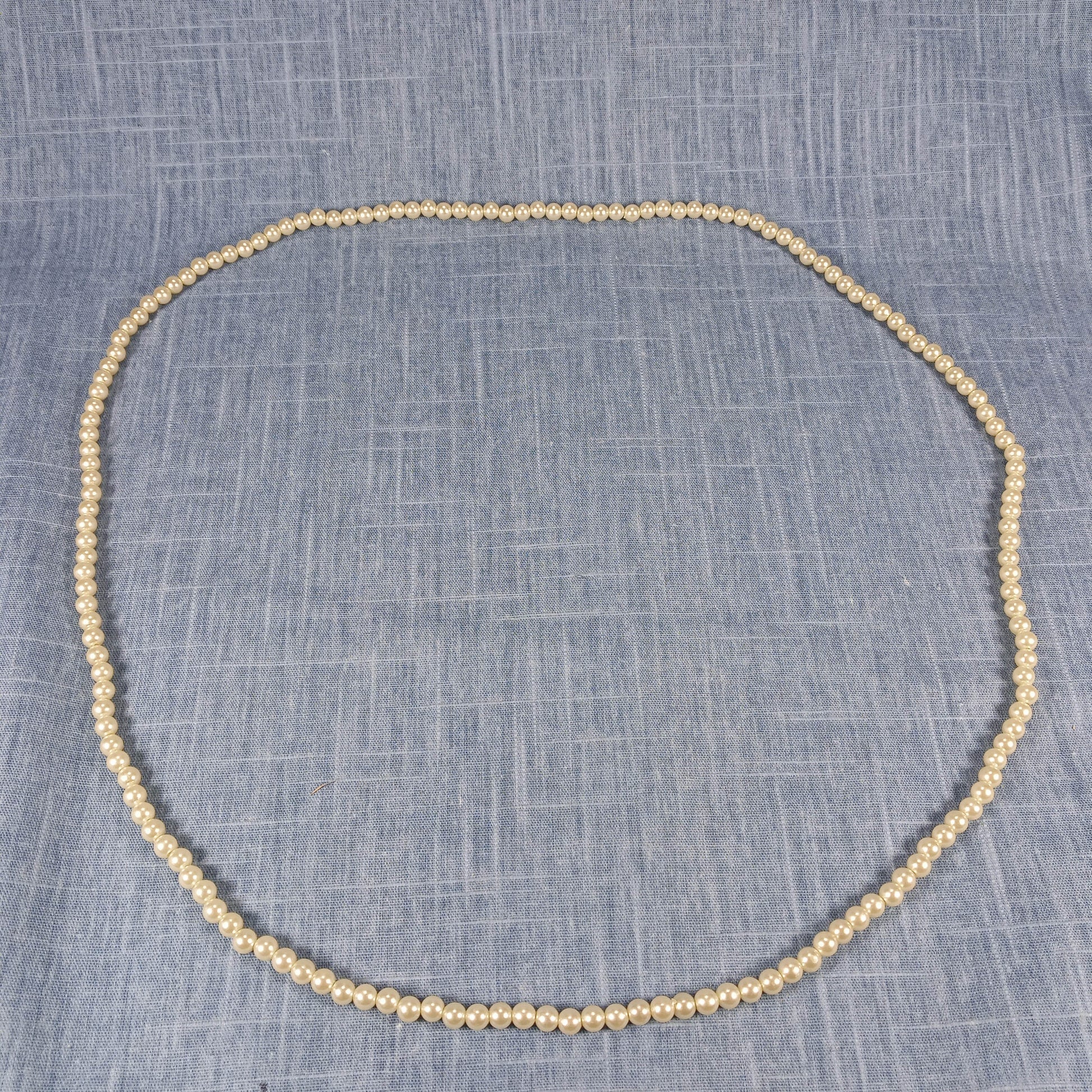 1970s Vintage Necklace: Single Continuous String of White Pearl Beads