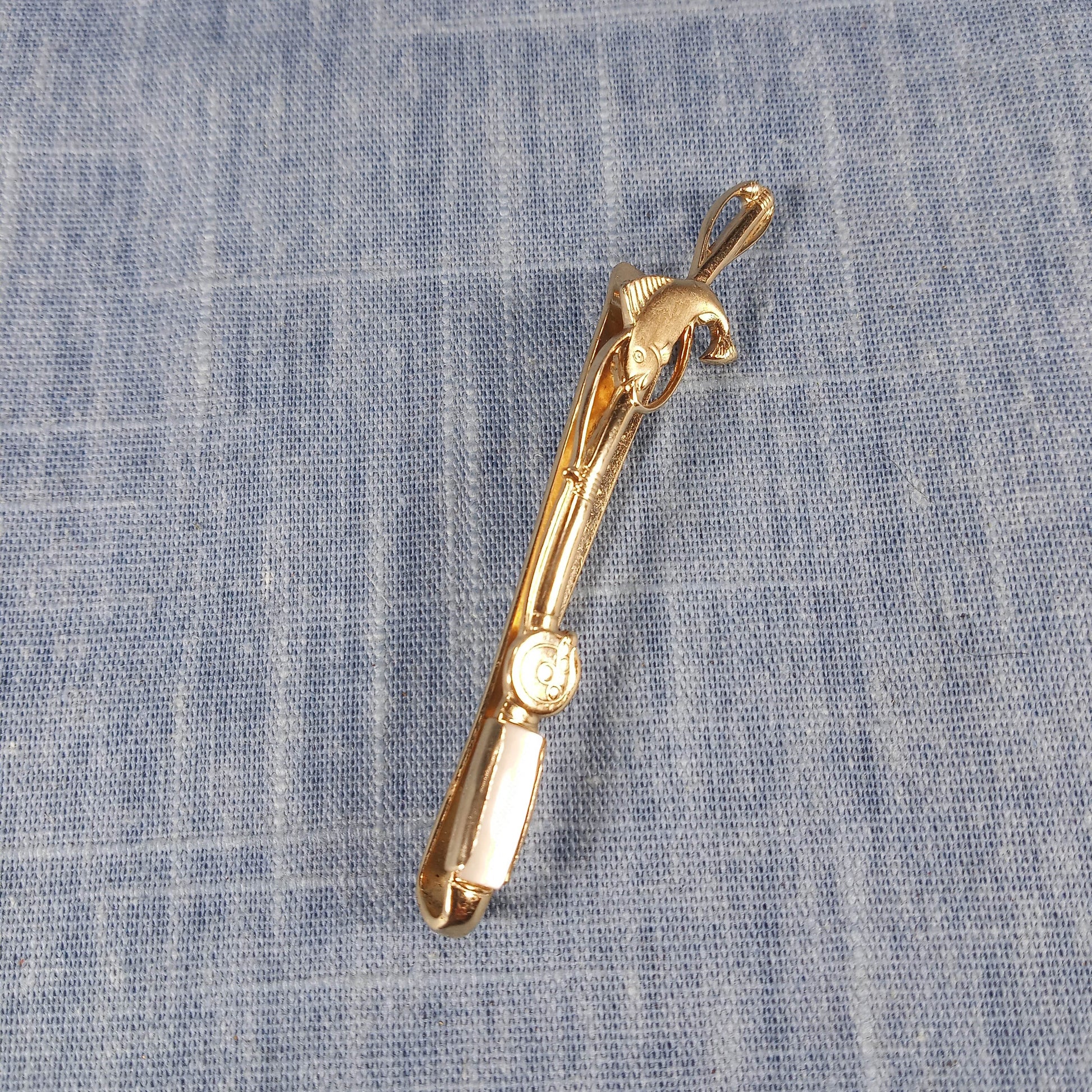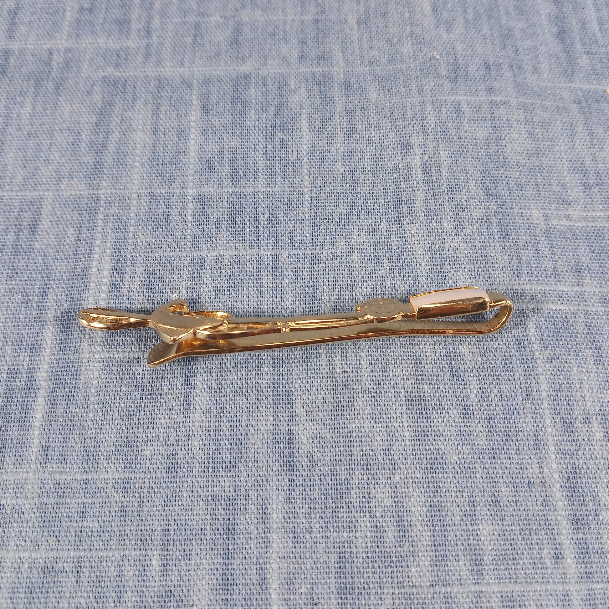 1980s Vintage Tie Clip w Mother of Pearl on a Fishing Rod Catching Fish by Anson