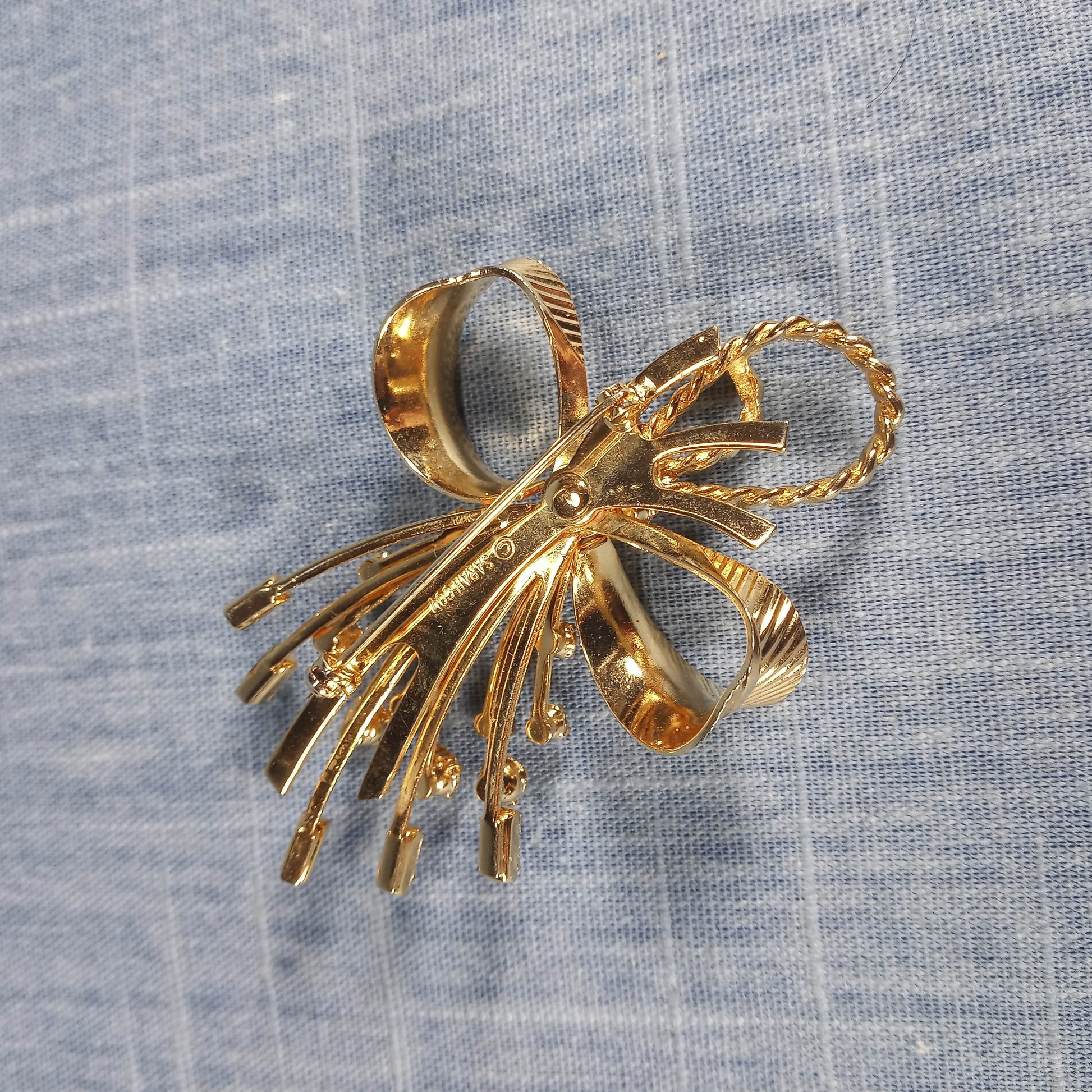 1990s Vintage Bow Spray Pin with Clear Rhinestones