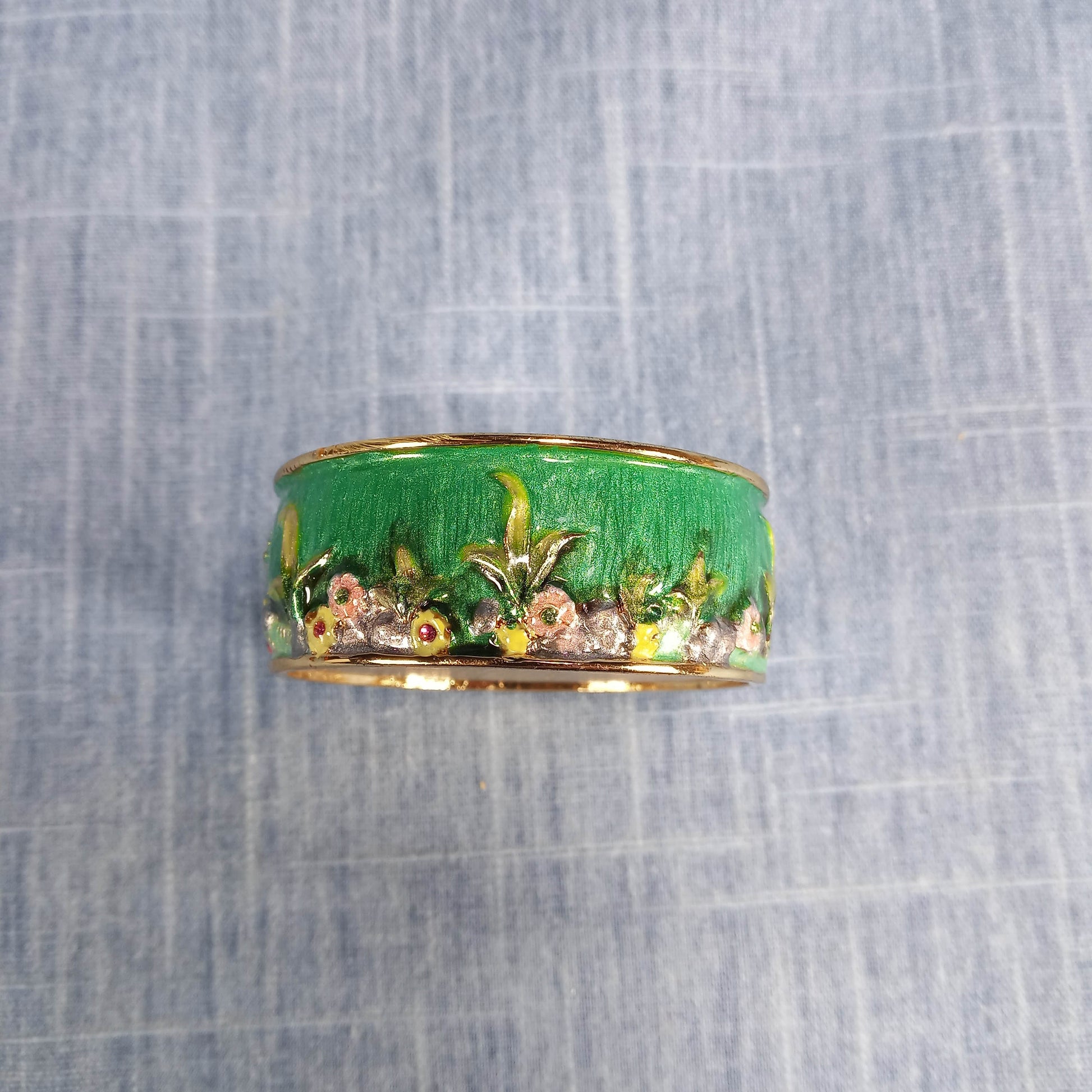 1990s Vintage Keepsake Holder: Flowers and Humming Birds in Green and Pink Enamel